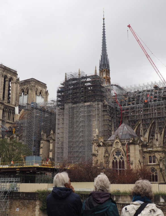 외부에서도 주요 복원 요소는 단연 96미터 높이의 첨탑입니다. 이 첨탑은 1859년 건축가 외젠 비올레르뒤크가 설계한 버전을 기반으로 동일하게 재건되었습니다. 첨탑의 꼭대기에는 황금 십자가와 황금 닭이 자리 잡고 있으며, 이는 건축가 필리프 빌뇌브의 지휘 아래 복원되었습니다.