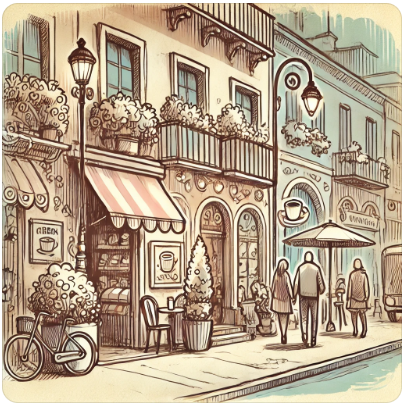 예를 들어, 길거리 카페에서 사람들이 커피를 마시는 모습을 그리거나, 지하철에서 기다리는 사람들의 모습을 기록하는 것도 Urban Sketch 의 한 형태가 될 수 있어요.