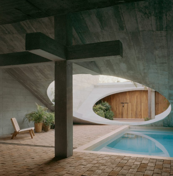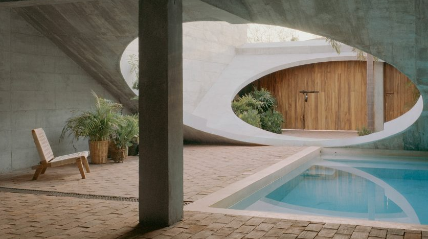 루드비히 고드프루아, 멕시코 건축, 푸에르토 에스콘디도 주택, 콘크리트 주택 디자인, 자연과 조화된 건축, 현대 건축, 친환경 건축, 열대 기후 주택, 원형 개구부, 미니멀리스트 건축