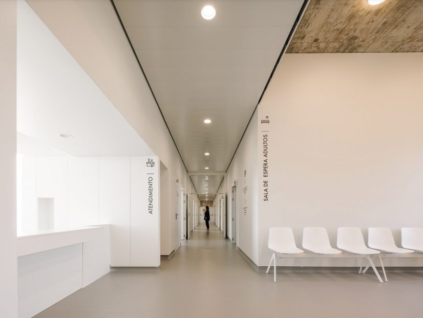 건물 내부는 노출된 콘크리트로 마감된 이동 공간이 밝은 흰색의 치료 구역과 연결되며, 원형 채광창을 통해 자연 채광이 들어오는 석재 타일로 마감된 욕실이 특징입니다. 설계 팀은 "건물의 거친 외관이 정원의 녹색과 밝은 실내 분위기와 대조를 이룬다"고 설명했습니다.