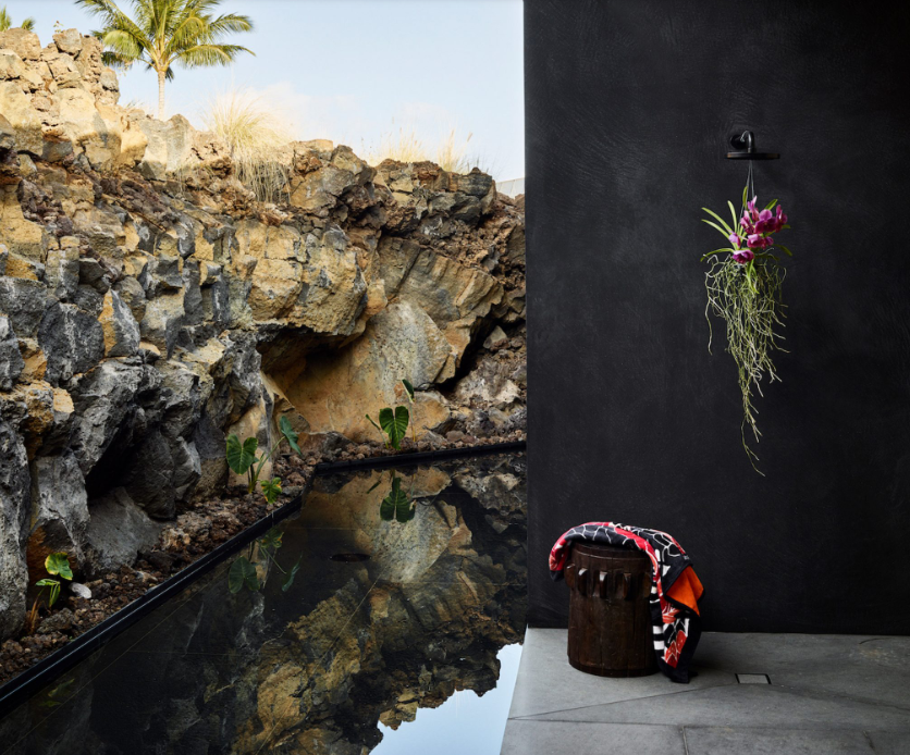 Kua Bay Residence는 현무암과 삼나무로 지어진 주택으로, 용암 지대에 자리잡고 있습니다. 이 주택은 바닷가에 위치해 있으며, 내부 공간과 외부 공간이 자연스럽게 연결될 수 있도록 설계되었습니다.