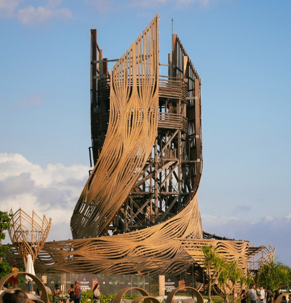 세계적인 건축가 아르튀르 마무 마니(Arthur Mamou-Mani)가 인도네시아 발리의 나야니(Nyanyi) 해변에 새로운 랜드마크를 완성했습니다. 이 30미터 높이의 'Tri Hita Karana Tower(THK Tower)'는 자연 환경에서 영감을 받아 라탄과 철목(ironwood)으로 설계된 작품으로, 내일 공식적으로 대중에게 공개될 예정입니다.