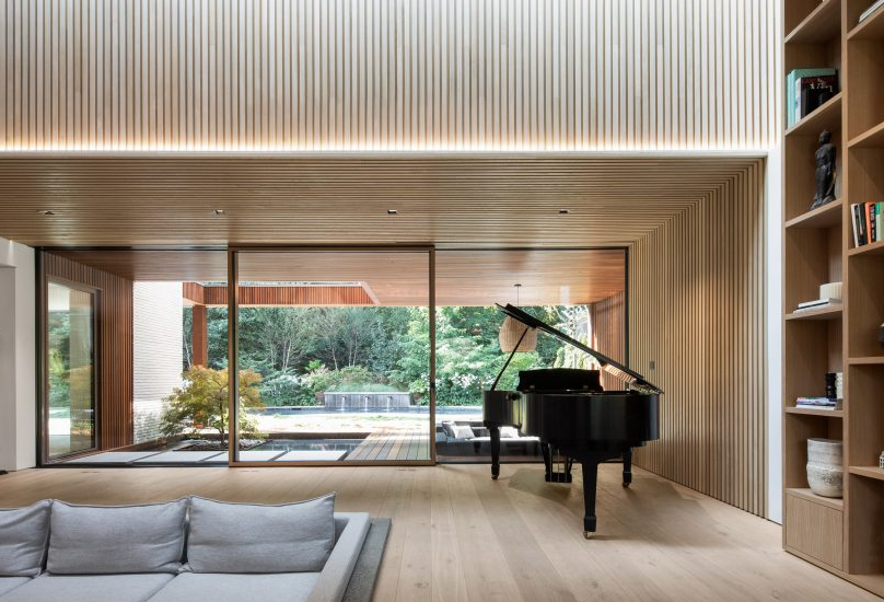 이 집은 미드센추리 모던 디자인 원칙과 일본 및 스칸디나비아의 영향을 조화롭게 융합한 결과물로, 설계 팀의 세심한 선택과 모든 디테일에 대한 신중한 실행을 통해 웰빙 감각을 불어넣는 현대적이고 환영받는 거주 공간을 제공합니다.