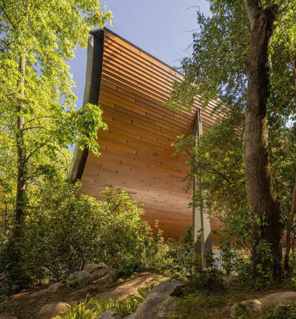 나무와 세라믹 타일로 구성된 캔틸레버