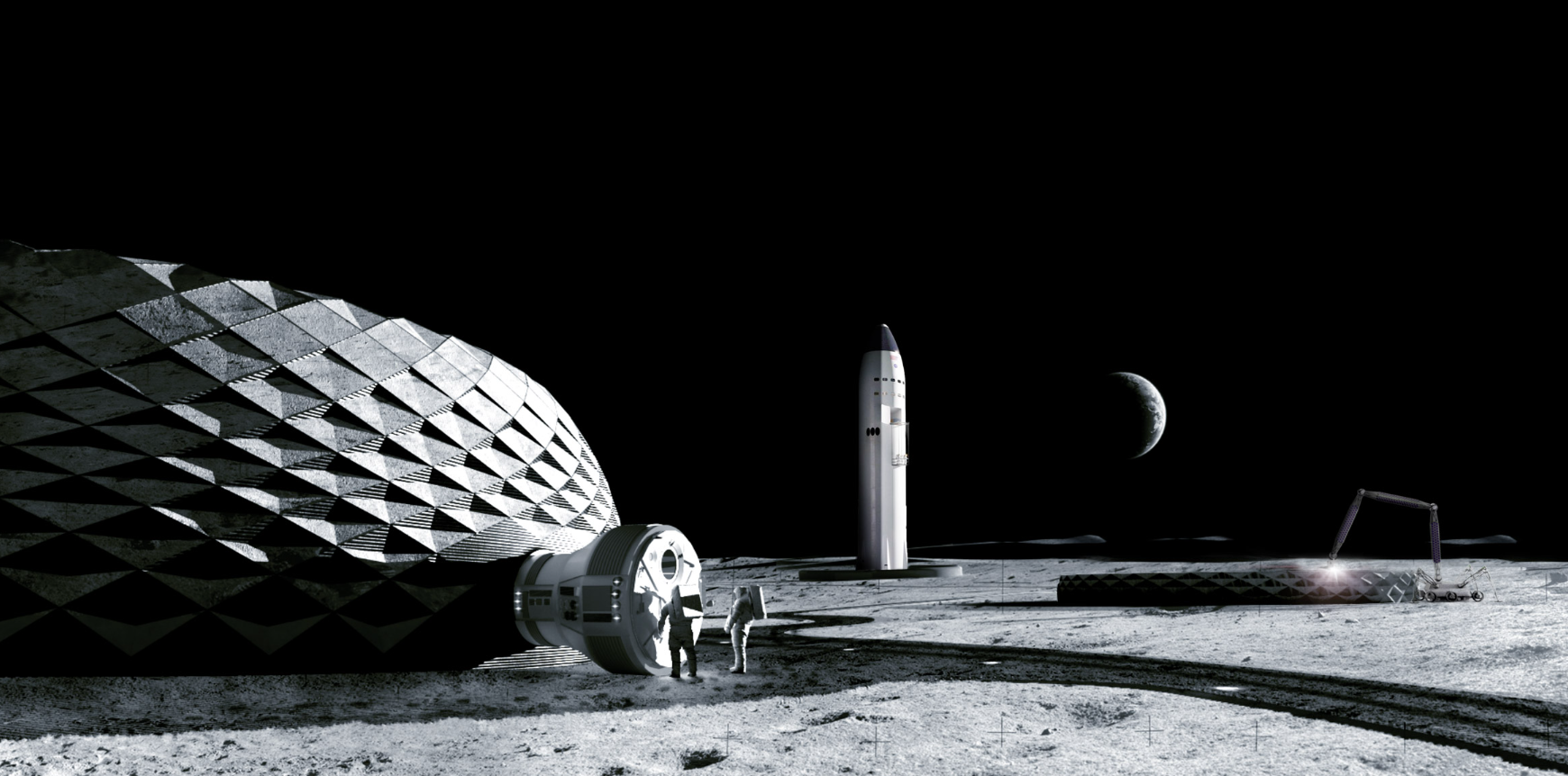 Aurelia Institute와 ICON 같은 회사들은 제한된 공간 내에서 장기 거주를 위한 새로운 방법을 연구하고 있습니다. Aurelia는 우주에서 모듈형 패널을 자기적으로 결합하여 지구 궤도에서 더 큰 거주 공간을 만들 수 있는 시스템을 개발 중입니다. ICON은 BIG와 함께 달에 3D 프린팅 로봇을 이용해 건설 시스템을 구축하는 프로젝트 올림푸스를 진행하고 있습니다. 이 프로젝트는 먼저 달에 착륙장을 3D 프린팅한 후, 저장소와 사람이 거주할 수 있는 구조물을 만드는 것을 목표로 하고 있습니다.