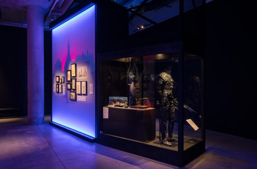 버튼 감독의 영화에 등장했던 실물 크기의 의상도 전시의 중요한 부분입니다. 예를 들어, 2010년 영화 ‘이상한 나라의 앨리스’(Alice in Wonderland)에서 볼 수 있었던 붉은색과 검은색 실크 드레스가 전시되어 있으며, 이 의상은 버튼과 오랜 협업을 이어 온 코스튬 디자이너 콜린 앳우드가 제작한 작품입니다. 의상은 영화 속 캐릭터의 개성과 분위기를 극대화하며, 버튼 감독이 영화의 시각적 요소에 얼마나 세심하게 신경 쓰는지 보여줍니다.