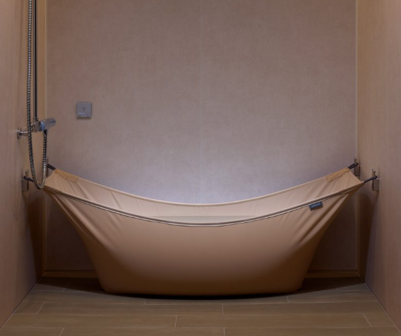 일본의 혁신적인 제품 디자인 그룹 LIXIL이 도쿄 디자인아트(Designart Tokyo)에서 전혀 새로운 형태의 접이식 욕조를 선보였습니다. 이 욕조는 방수 직물 한 장으로 만들어졌으며, 사용하지 않을 때는 해먹처럼 벽에 걸거나 말아서 간편하게 보관할 수 있습니다. 좁은 공간에서도 욕조와 샤워를 자유롭게 선택할 수 있는 이 제품은 현대적인 도시 생활의 공간 제약을 고려하여 설계되었습니다.
